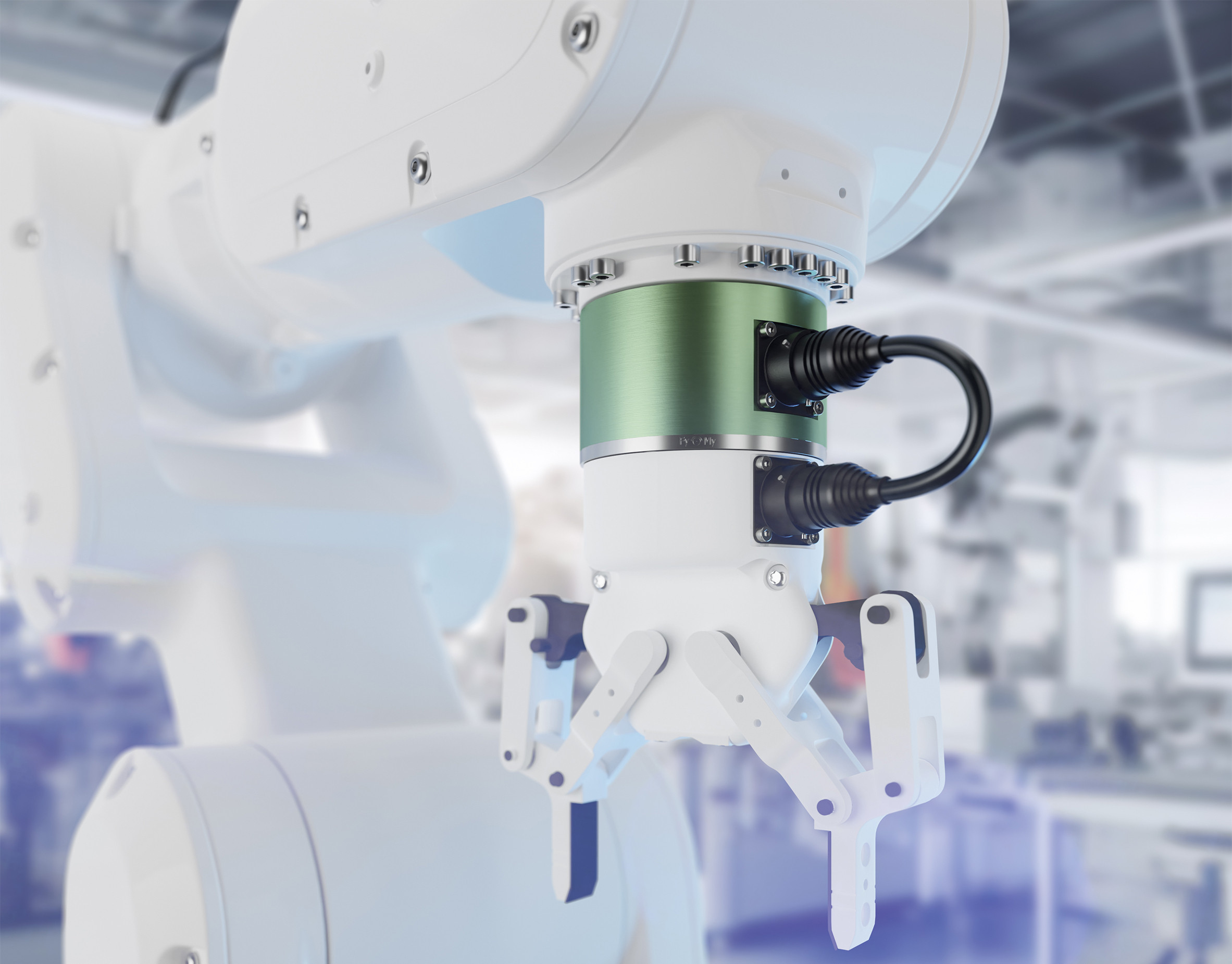 Bei Bestückungsprozessen beispielsweise können aus den Messwerten Rückschlüsse auf die richtigen Teile, deren Positionierung und die korrekte Bestückung getroffen werden. Die Spezialisten von Burster haben dafür einen sechsachsigen Kraft- und Drehmomentsensor mit Roboterflansch nach DIN ISO 9049-1 entwickelt, der einfach an der Standardaufnahme des Roboterarms befestigt wird.