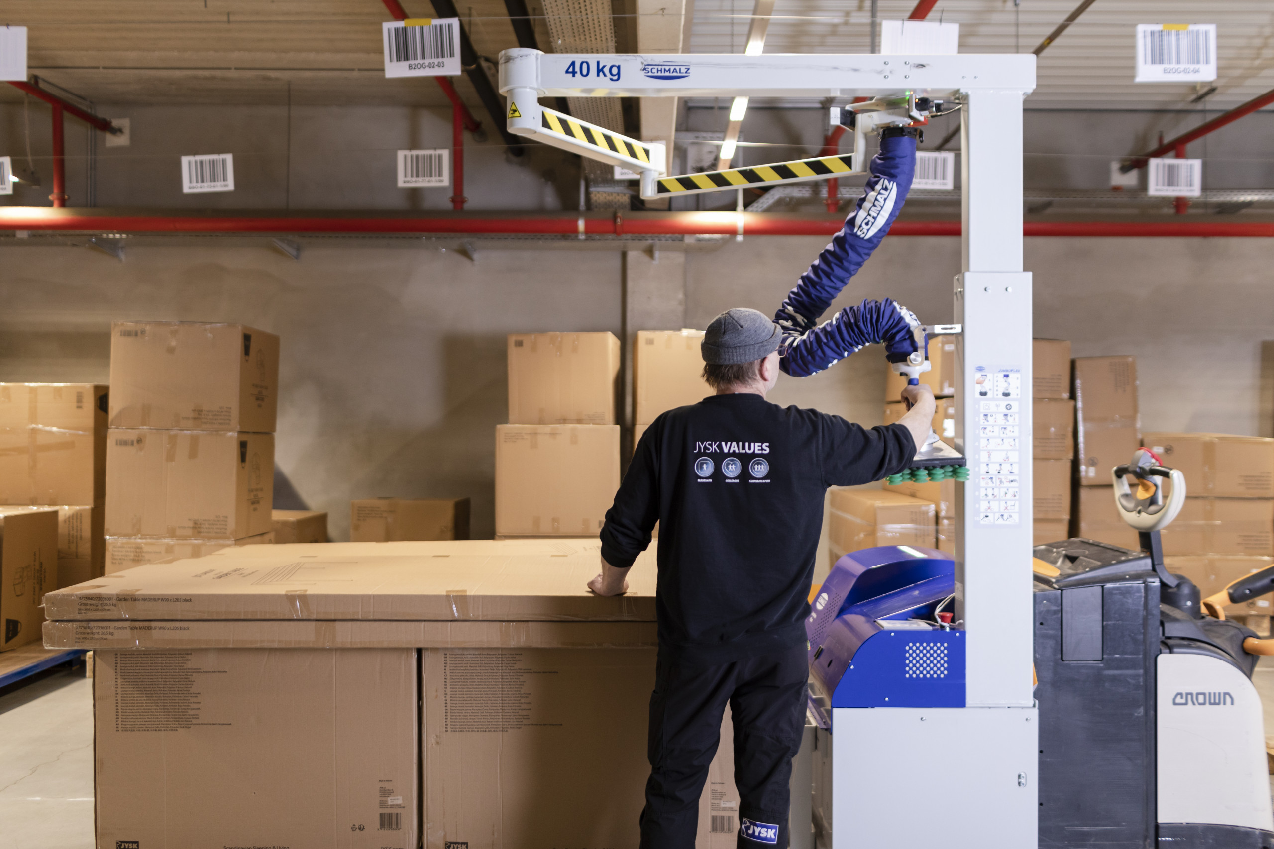 JSYK, bekannter unter seinem früheren Namen „Dänisches Bettenlager“, will, dass sich seine Kunden wohlfühlen. Das bereitete den Mitarbeitern im Logistiklager Rückenschmerzen – beim Kommissionieren der schweren und zum Teil unhandlichen Möbelpakete. Um die Logistiker im weitläufigen Lager zu unterstützen, suchte das Unternehmen eine ergonomische Hebehilfe, die dort entlastet, wo ein Tisch oder Schrank gerade verladen werden muss.
