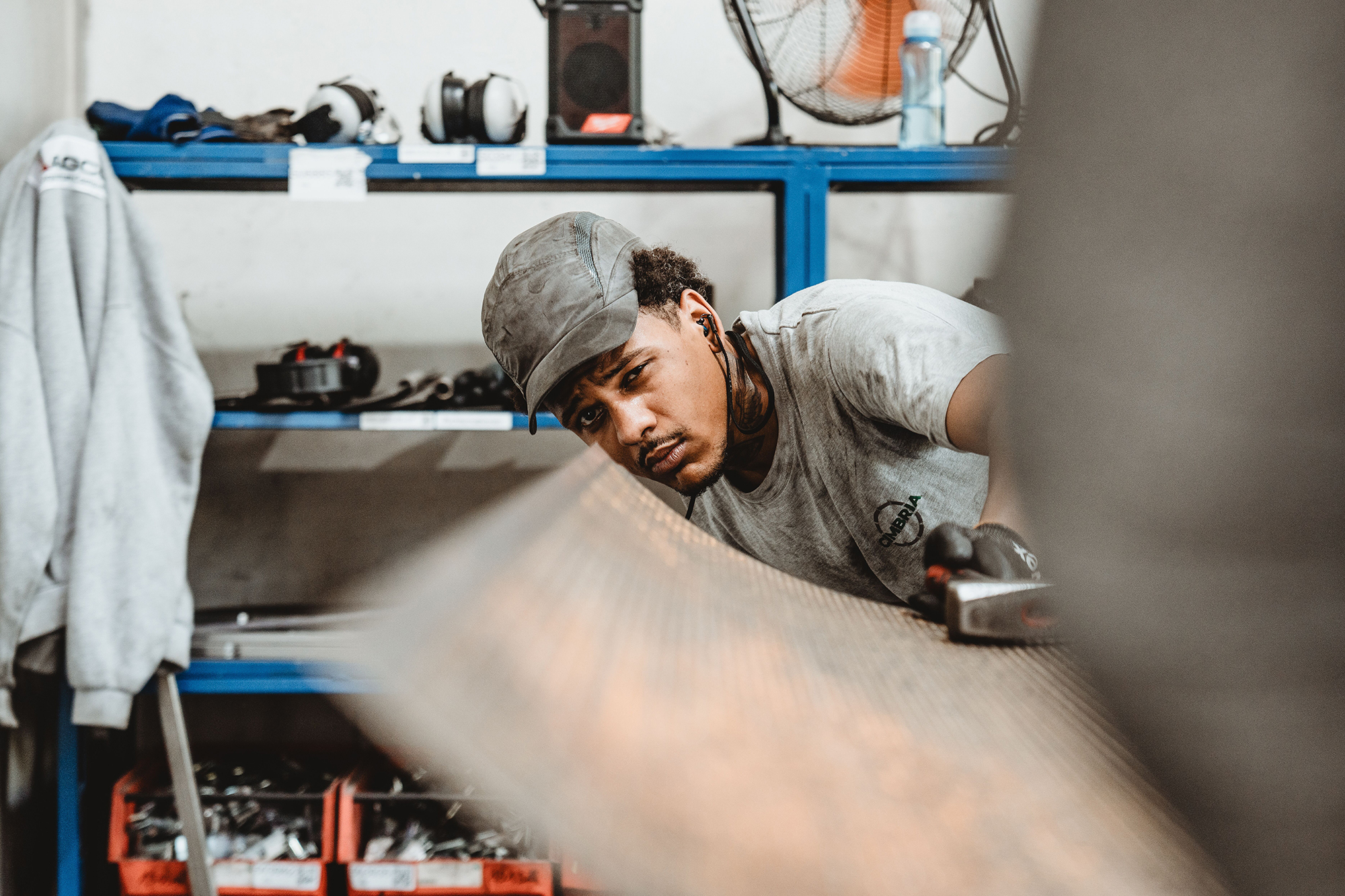 The sheet weighs 40 kilos, which the production workers balance and clamp onto the old punching machine. Row by row, the machine pushes the sheet forward. The punching head lowers evenly and presses the shape into the thin material, always the same: twelve indentations, further, twelve indentations, further, two meters in one direction, two meters back, until the sheet is full. The sheet that is created here later sorts seeds. The technology is 130 years old, dating back to the early days of Cimbria Heid – and it will soon be retired.
