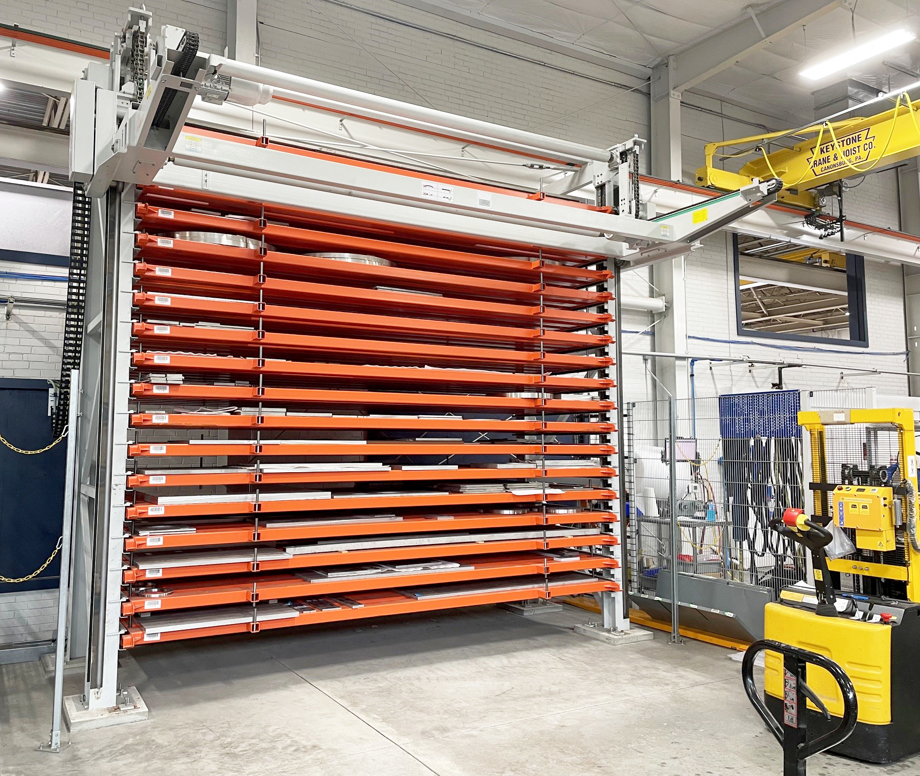 High storage density in the smallest of spaces – the logistics processes at the Kurt J. Lesker Company have improved significantly thanks to a new tower warehouse. As part of a production expansion, the company invested in a Kastoecostore 3.0 to store sheet metal.