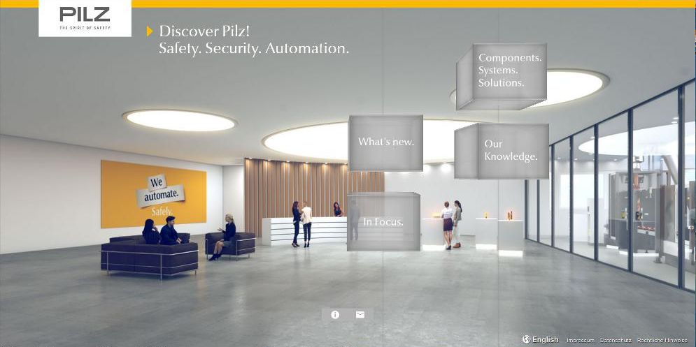 With the digital showroom Pilz opens up virtual access to the world of safe automation. On offer are Pilz product innovations in 360° view, individual automation solutions in action, exciting focus topics and the latest specialist knowledge and services on machine safety.