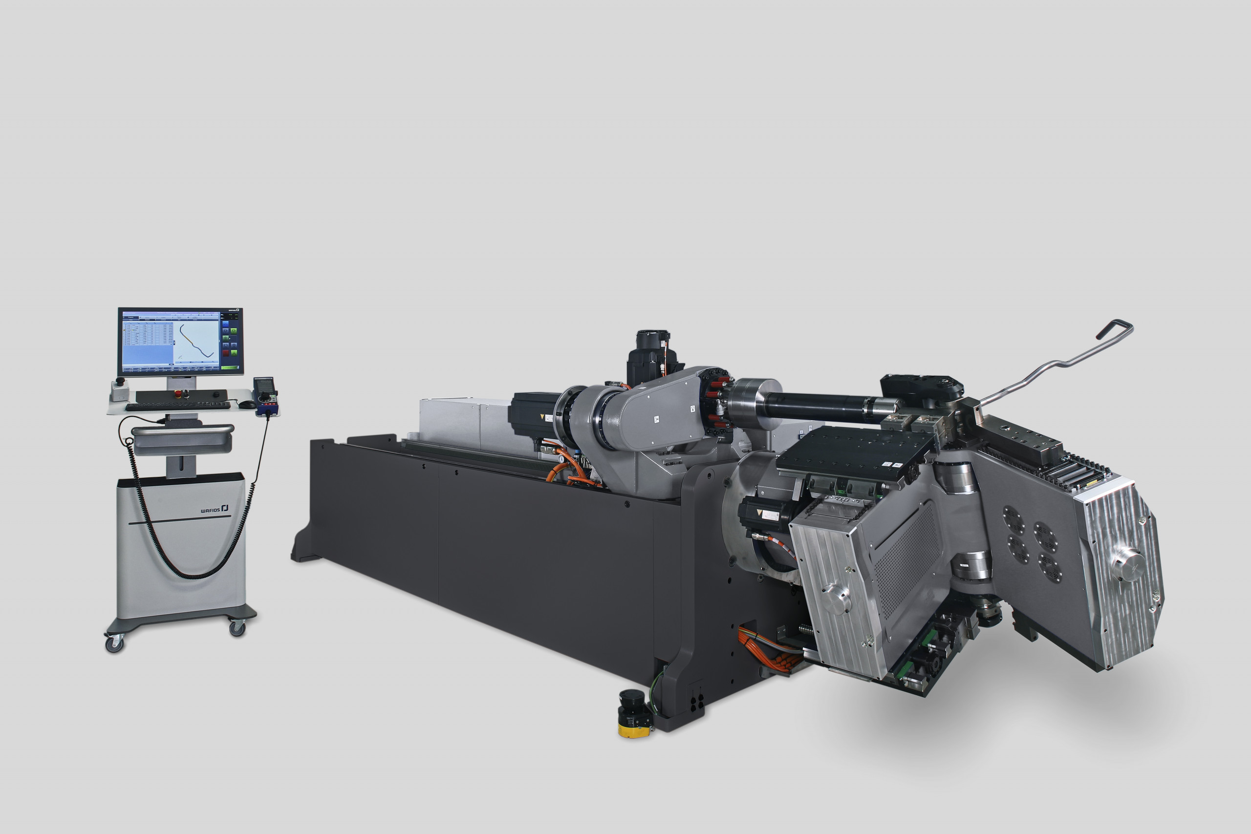 Extension of the Twister² product family in the upper working range. The robotic bending line combines flexible tube handling and the bending process in one complete system. This also allows components with preassembled fittings on both sides, such as those found on hydraulic lines with hose segments, to be bent efficiently by sequentially machining both sides of the tube. The use of rotary tensile bending tools with several levels also allows the use of special and forming tools for short clamping lengths.