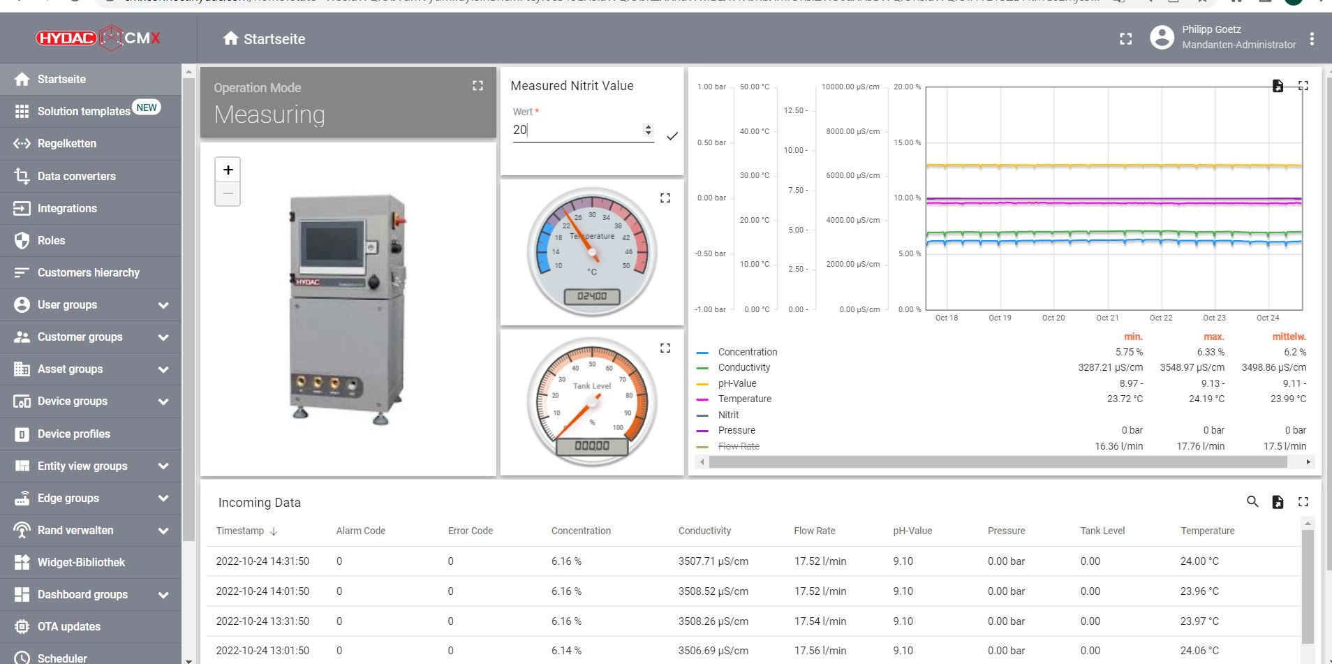 The smart device ZG Fluid-Check Pro monitors the level and measures concentration, pH, conductivity and temperature in real time – every minute the current measured values are displayed on the dashboard. In addition, four further values such as nitrite or, for example, the tramp oil content can be entered manually.