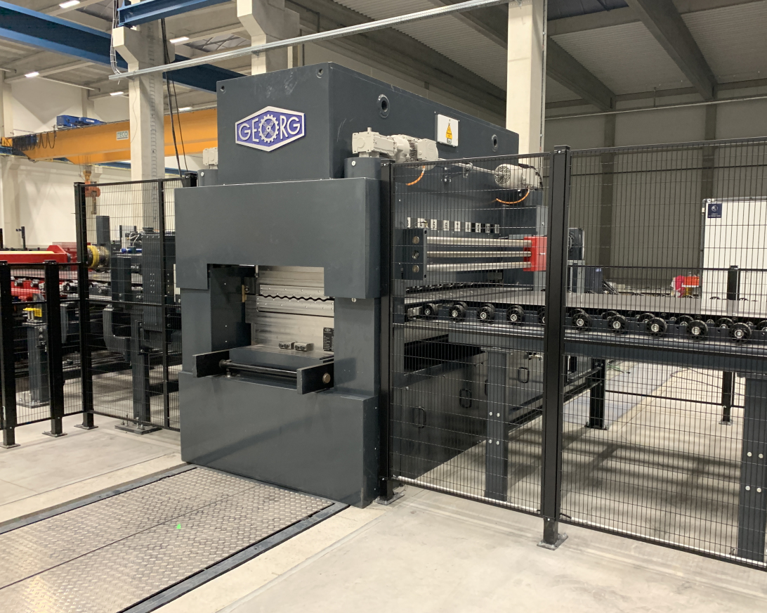 In order to achieve the highest cutting quality during cross-cutting, Georg has supplied a continuous cutting eccentric shear. Its blade has an adapted contour that ensures high precision especially when cutting highly sensitive stainless steel.