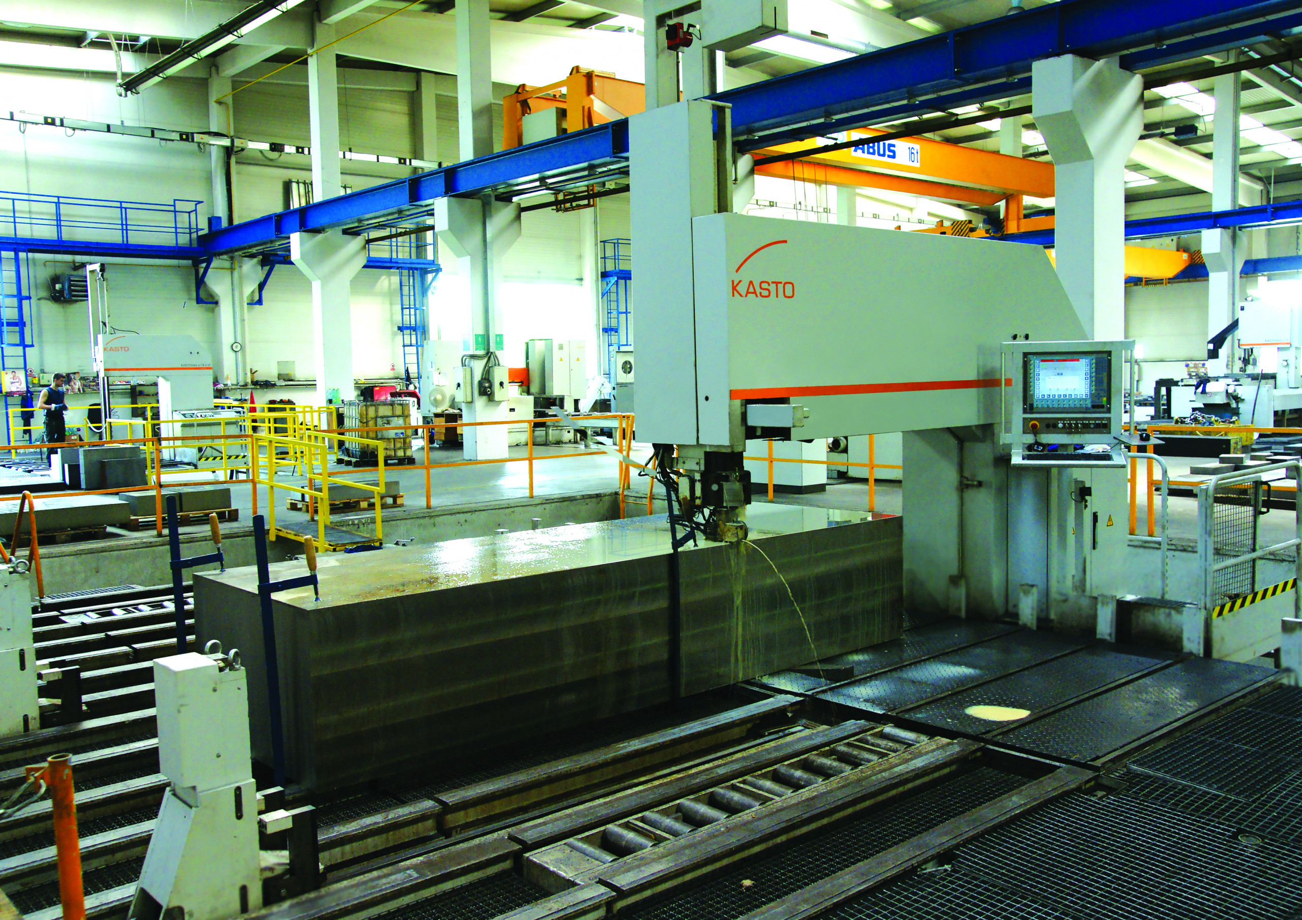 JKZ used the gained space, among other things, for the purchase of two new fully automatic log band saws of the type Kastobbs A 3×20. These giants are specially designed to make up different cross-section dimensions from rolled blocks and plates, square or flat materials. They can handle cutting heights of up to 420 millimeters and cutting lengths of up to 7,000 millimeters. The load-bearing capacity of the material support table is an impressive 56 t. This makes the Kastobbs a real powerhouse that can easily handle even large dimensions and heavy workpieces.