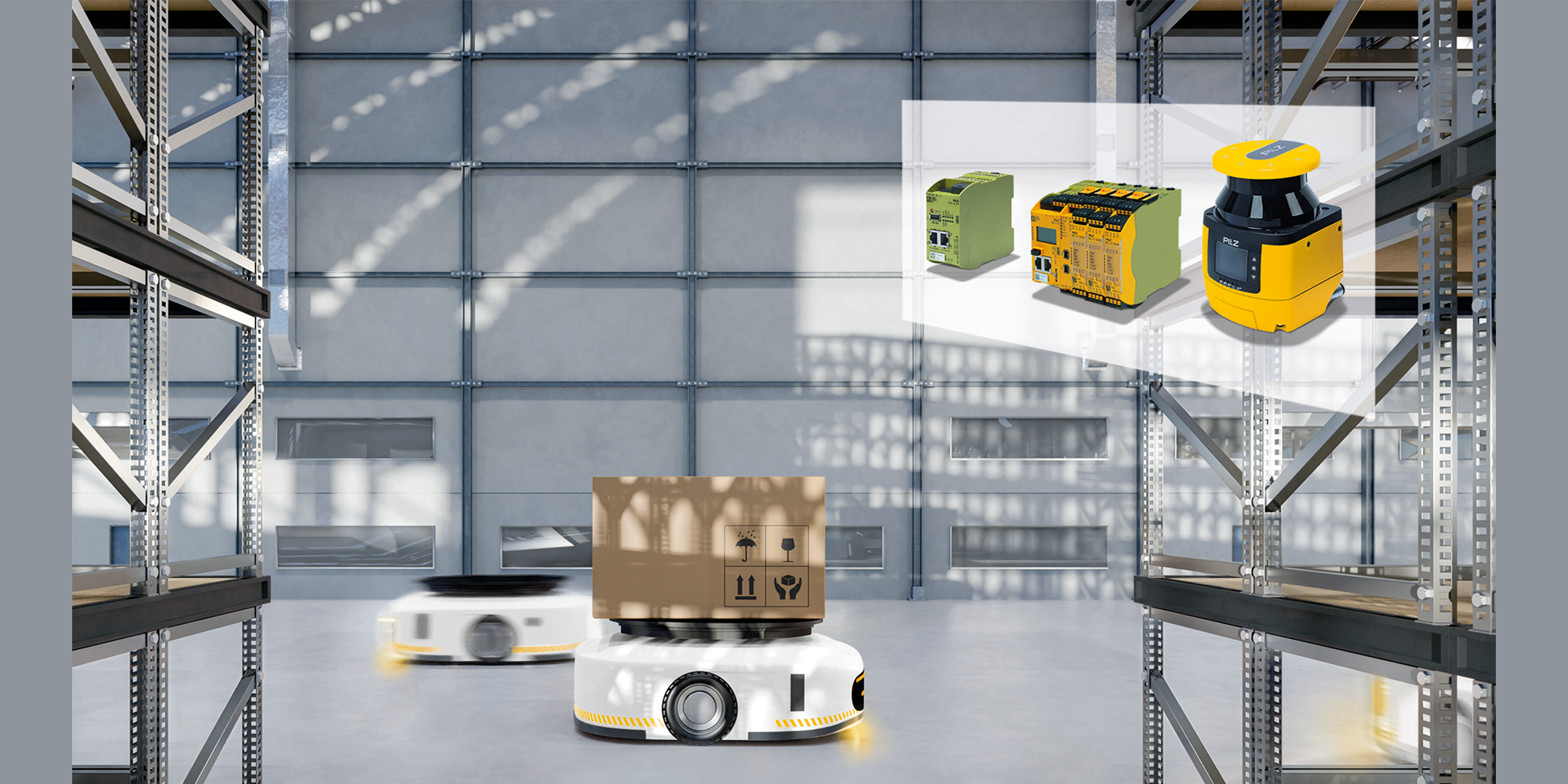 Pilz now offers manufacturers a comprehensive safety solution in accordance with ISO 3691-4 for freely navigating mobile platforms – for an efficient flow of goods in production and logistics. It consists of the safe mini controller PNOZmulti 2 with new functionalities for synchronization monitoring and control of the PSENscan safety laser scanners. PSENscan, as the second component of the security solution, ensure productive area monitoring. In addition, the Industrial Firewall SecurityBridge provides protection against unauthorized access from the outside.