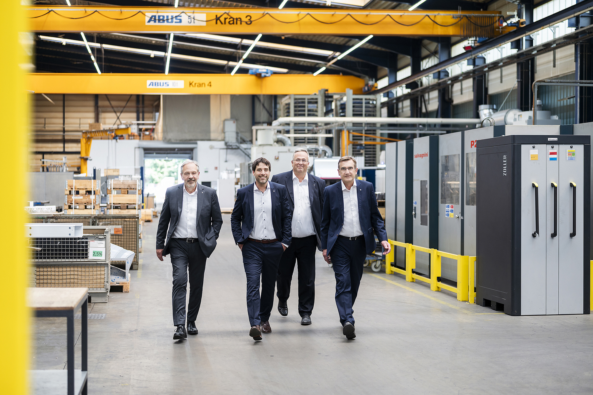 The management team consisting of (from left to right) authorized signatory and sales manager Frank Niedermaier, managing director duo Kai Klenk and Achim Hinterkopf as well as authorized signatory and production manager Lothar Weber ensure that H.P. Kaysser is first and foremost a service provider for production-oriented solutions, which then uses the production capacity of a high-performance machine park and highly qualified personnel to reliably and reliably manufacture the resulting products in the desired quantities. © H.P. Kaysser