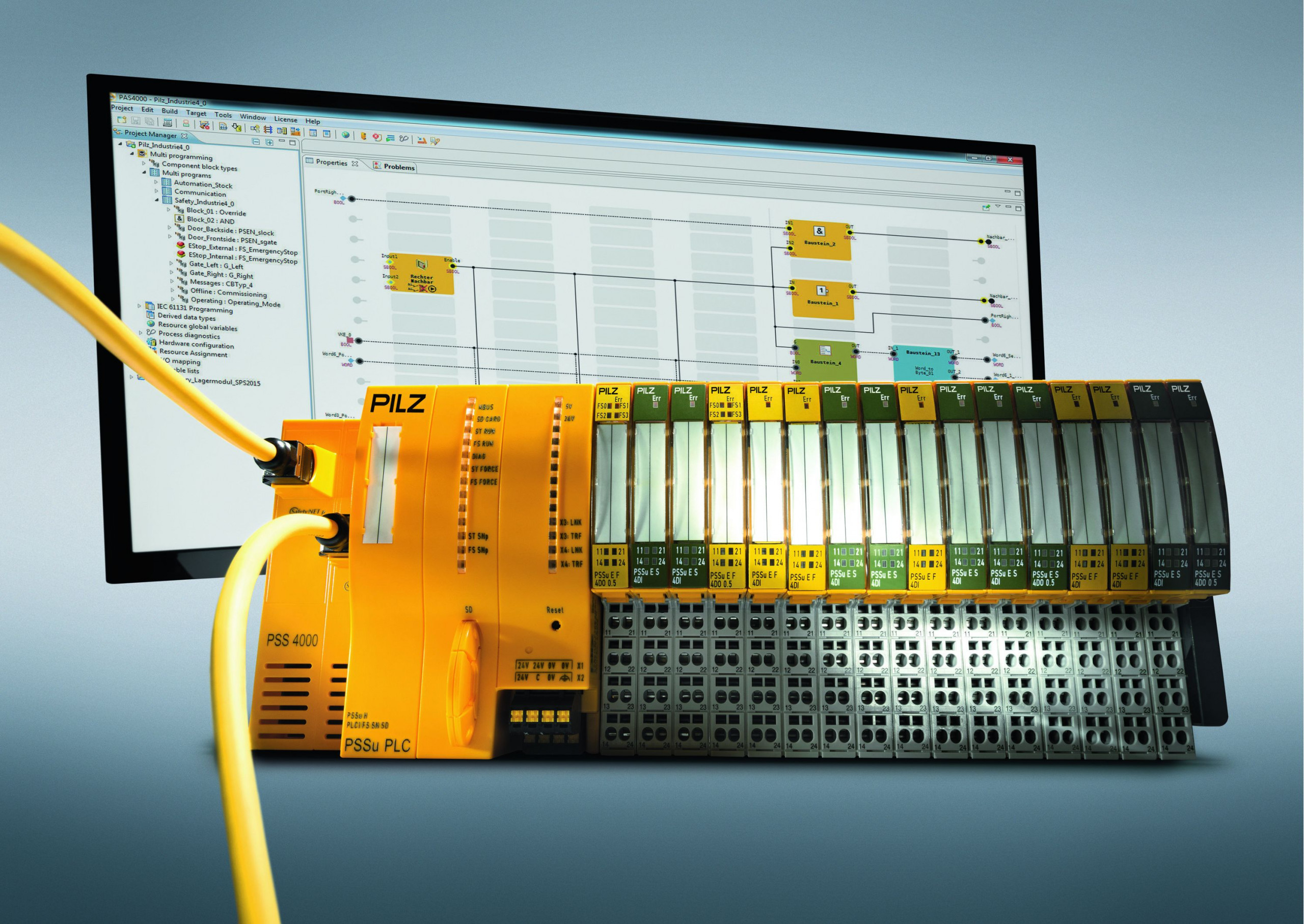 The PAS4000 software of the automation system PSS 4000 can be used to configure function blocks that focus on specific application scenarios, in this case the burner application. With the so-called burner management software package, programs for controlling different types of burners can be implemented flexibly and easily, and safety functions such as the safety gate contacts, emergency stops and light curtains can be executed.