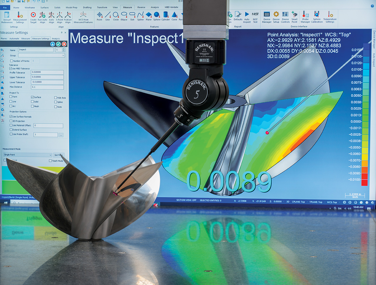 The Renishaw probe works on a wide range of surfaces – including 2, 5 or 10 micron radius holes – and can output Ra, RMS and raw data for further analysis and reporting. In combination with Verisurf, the probe provides detailed and precise data. They can be verified against a nominal 3D CAD model and help users make informed decisions about component quality and acceptability.