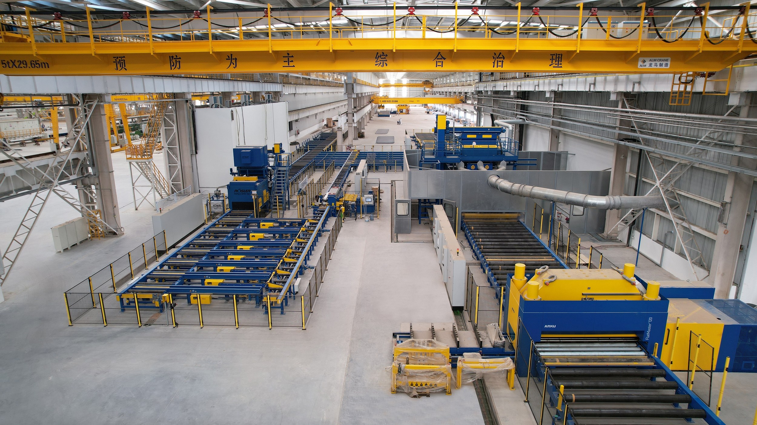 The 180-meter-long preservation solution, which is individually tailored to CMCS’ requirements, consists of a sheet line, known as the main line, and a profile line from which the blasted profiles are fed into the main line. In addition to the two roller conveyor shot blast machines with optimally adapted Gamma 400G or Rutten Gamma 400 HD turbines, straightening systems for the profiles and up to 12,000 mm long sheets, a fully automated painting system including paint supply and a thermal afterburner are integrated.