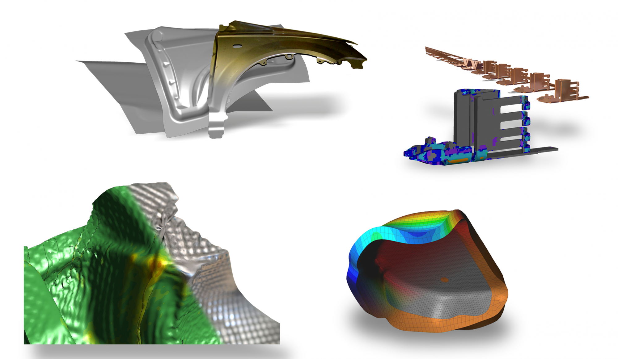 Thanks to enormous improvements in the computing speed of its own 3D volume solver, Stampack is suitable for complex forming processes in the contact connector sector as well as for large-area automotive parts.