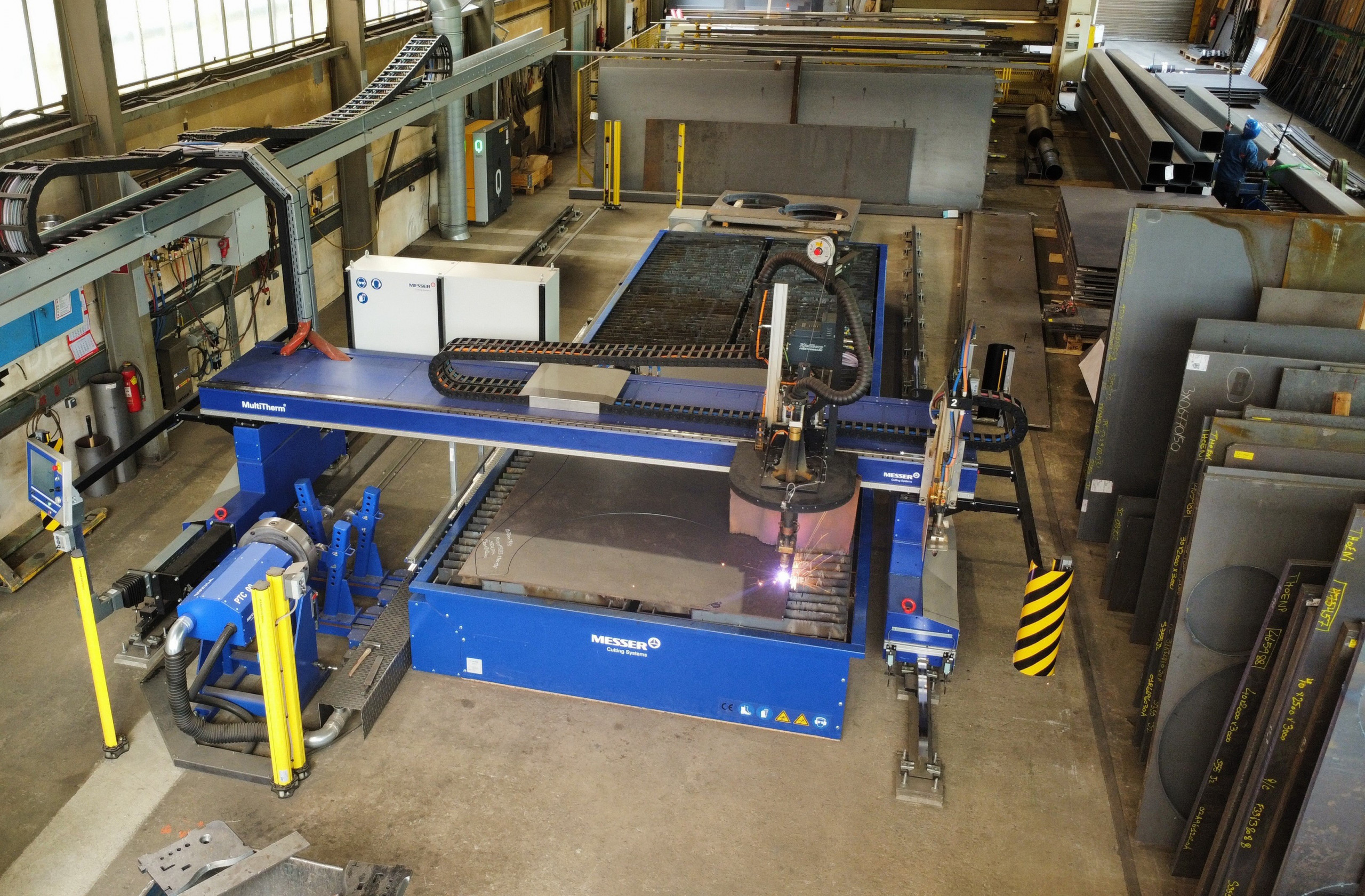 Die Gesamtlösung von Messer Cutting Systems rund um die Brennschneidmaschine MultiTherm konnte schließlich überzeugen. Die Schneidanlage kombiniert Plasma- und Autogenschneiden. Dank ihrer vielfältigen Ausrüstungsoptionen ist sie für eine Fülle von Einsatzbereichen ausgelegt. Die CNC-Schneidmaschine ist effizient mit höchsten Anforderungen an Qualität und Produktivität. Ausgestattet ist die MultiTherm für Thöni mit einem Plasma-Fasenaggregat Skew Rotator Delta, einem Alfa-Autogenbrenner und dem Rohrschneidsystem PTC500.