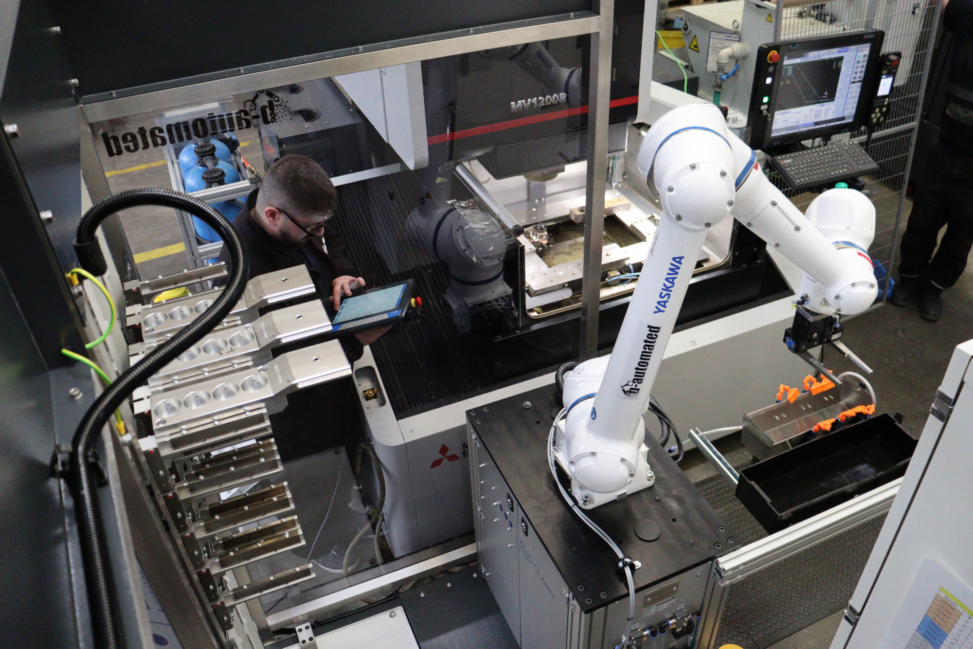 Bei der Suche nach dem optimalen Konzept für diese anspruchsvolle Aufgabenstellung wurde Nordspan durch die Empfehlung von Yaskawa bei dem Systemintegrator B-Automated und seinem Inhaber Luciano Baumgart fündig. Die Gesamtlösung kombiniert einen ZeroCob-Baukasten und Spannmittel von ZeroClamp mit einem Cobot HC10DTP sowie einem Greifer der Zimmer Group. Die Schnittstelle zwischen Robotersteuerung und Erodiermaschine wird über eine Fabriksoftware des deutschen Anbieters Software4production GmbH (abgekürzt S4P) realisiert.