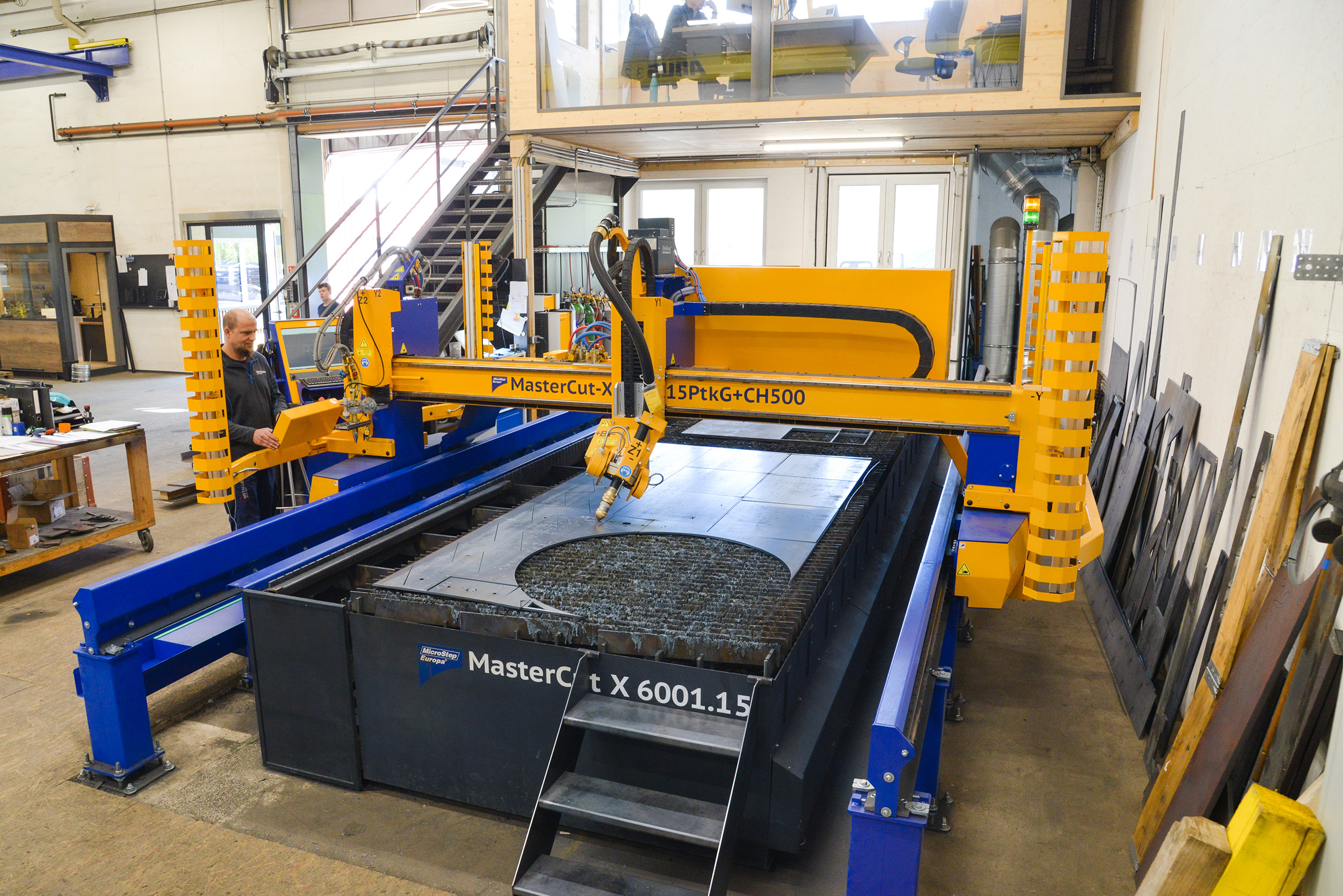 Bis dato wurden die benötigten Teile zumeist manuell per Handplasmabrenner zugeschnitten oder mit der Schlagschere – oder bei Bedarf auch zugekauft. Darunter litten Geschwindigkeit und Flexibilität in der Produktion, Mitarbeiter waren mit Nacharbeiten gebunden. Eine eigene Lösung sollte das ändern. Über den im Haus seit Jahren bekannten Händler Kleineberg Maschinen GmbH kam der Kontakt zu MicroStep zustande.