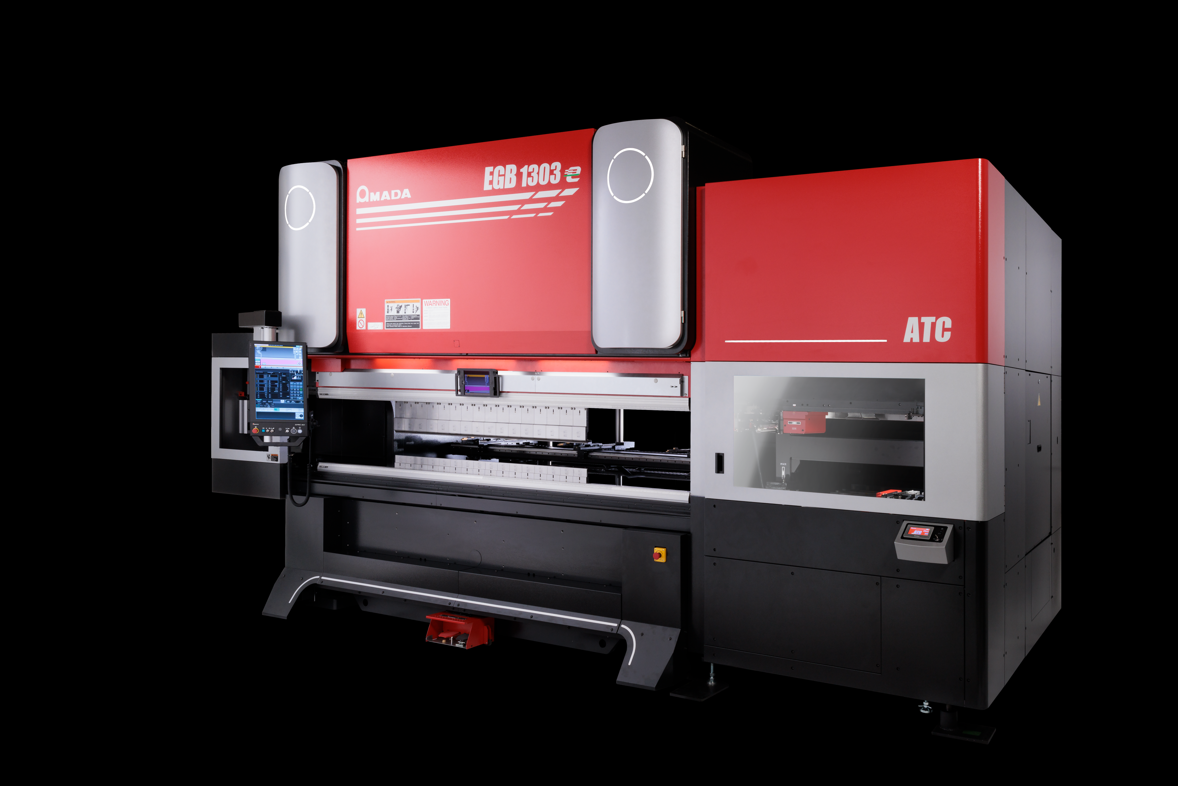 Der automatische Werkzeugwechsler EGB-ATCe der EGB-e-Serie ist mit modernster Technologie ausgestattet, um das Bedienpersonal zu unterstützen, maximale Genauigkeit zu gewährleisten und die Umwelt zu schützen. Zu den Neuerungen zählen ein brandneuer Servoantrieb und ein elektrisches Bombiersystem, ein neuer Dreifinger-Hinteranschlag mit AR-Technologie, erstmals eine Sprachsteuerung sowie eine Weiterentwicklung der Amada-Winkelmesstechnologie.