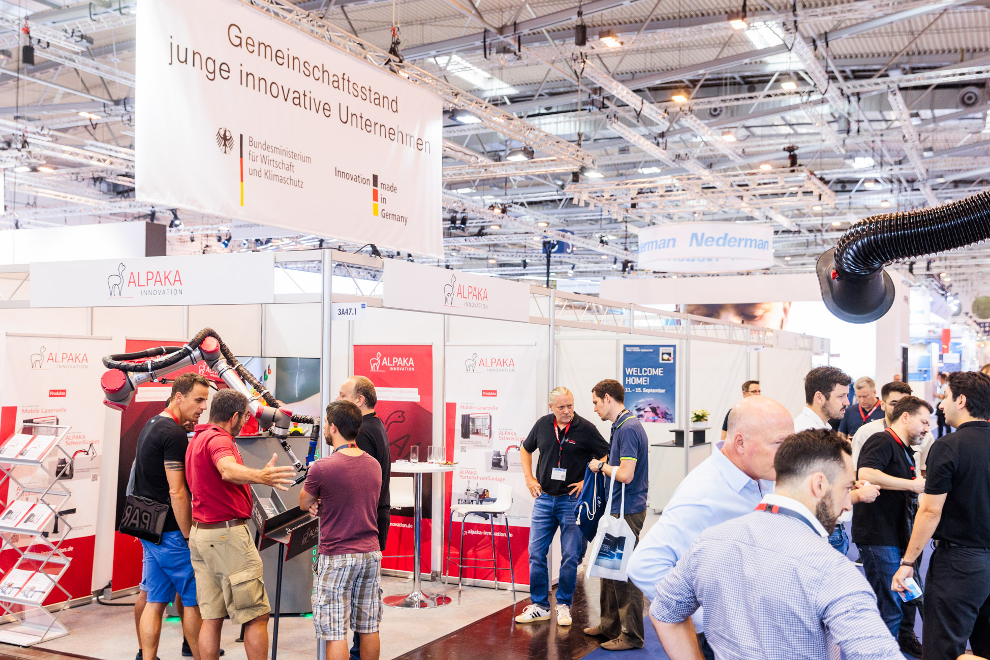 Der mobile Schweißcobot der Alpaka GmbH & Co. KG spart in der Handhabung Energie und erhöht als automatisiertes Schweißsystem die Qualität der Schweißnaht. Eingebaut ist das unternehmenseigene „SimpliTech“-System, das die Erstellung von Schweißbahnen erleichtert. Um den Roboter besser für die Branche der Zukunft aufzustellen, arbeitet Alpaka mit der Technischen Hochschule Würzburg-Schweinfurt zusammen. Ziel der Kooperation ist es, die Roboterautomatisierung für einen breiten Anwenderkreis zur Verfügung zu stellen. Hierzu soll umgesetzt werden, dass der Roboter auc h ohne eigene Programmierkenntnisse automatisiert Schweißpfade erstellen und anpassen kann.