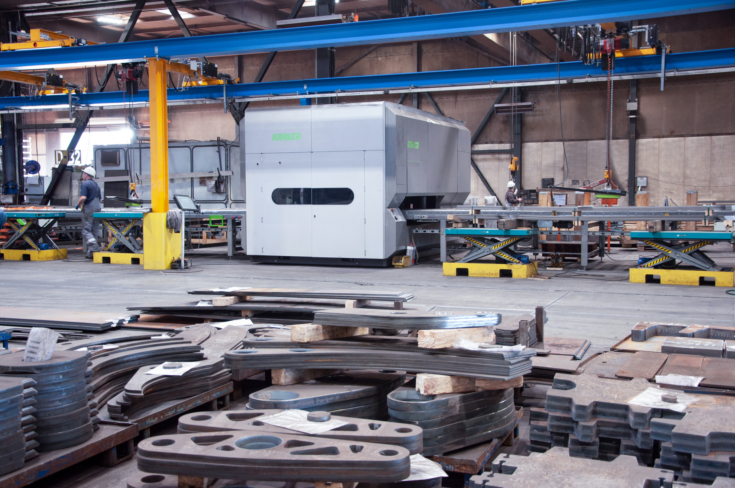 Jeweils zwei Plasma- und Autogen-Brennschneidanlagen, ein Fünf-Achs-Fasenroboter für die Schweißnahtvorbereitung, eine Durchlauf-Strahlanlage sowie verschiedene Gesenkbiegepressen kommen an dem Standort zum Einsatz. Mit dem Peak Performer 130P.2000 von Kohler Maschinenbau verfügt das Unternehmen außerdem über eine hochmoderne und leistungsfähige Teilerichtmaschine.
