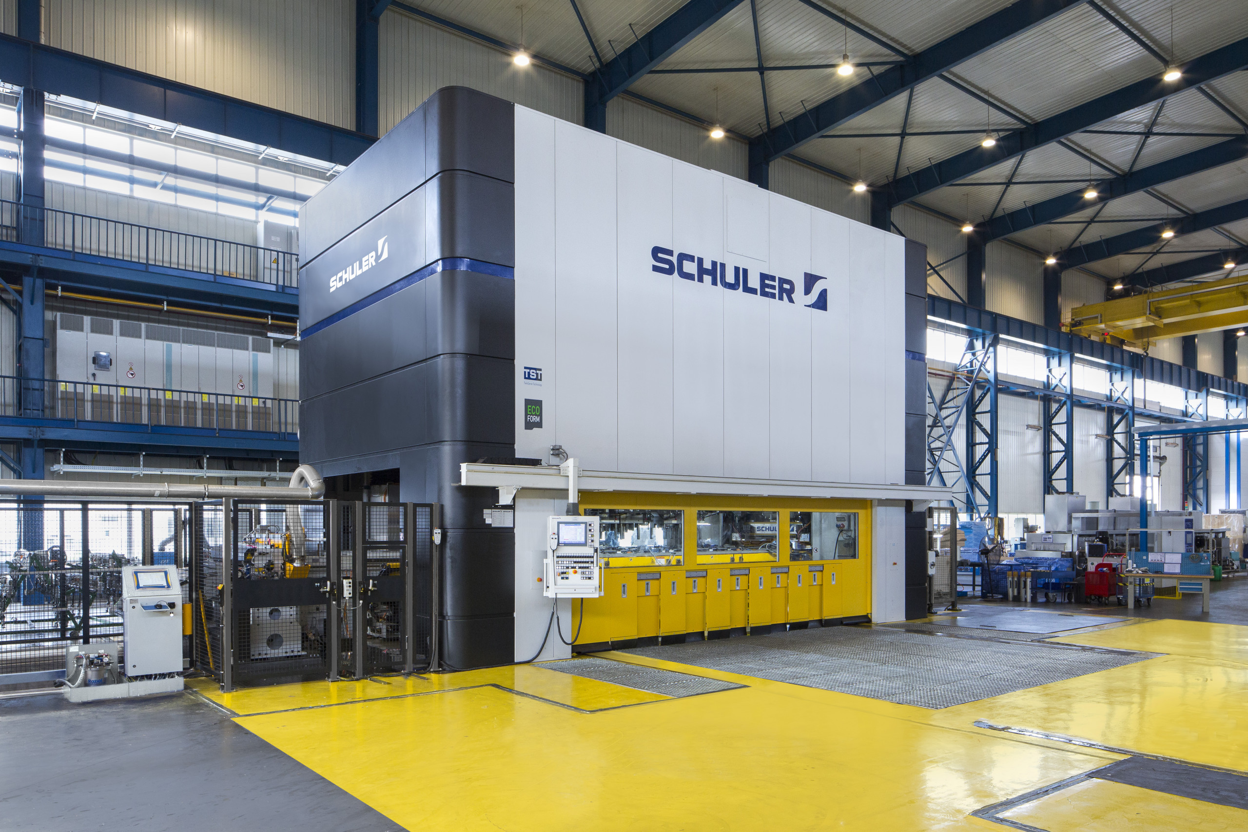 Bei Transferpressen kommt es durch die Umformung der Teile in Stufen üblicherweise zu einer Schrägstellung des Stößels. Nicht so bei Anlagen mit TwinServo-Technologie von Schuler: Die weit auseinander liegenden Druckpunkte bieten hier eine breite Basis für eine außermittige Belastung. Weil die Unterflurantriebe nicht mechanisch miteinander gekoppelt sind, lässt sich zudem durch eine asymmetrische Regelung einer Schrägstellung entgegenwirken. Das hat sich jetzt wieder im Rahmen der Inbetriebnahme einer 16.000 Kilonewton starken TST-Presse bei einem namhaften und weltweit tätigen Automobilzulieferer gezeigt.