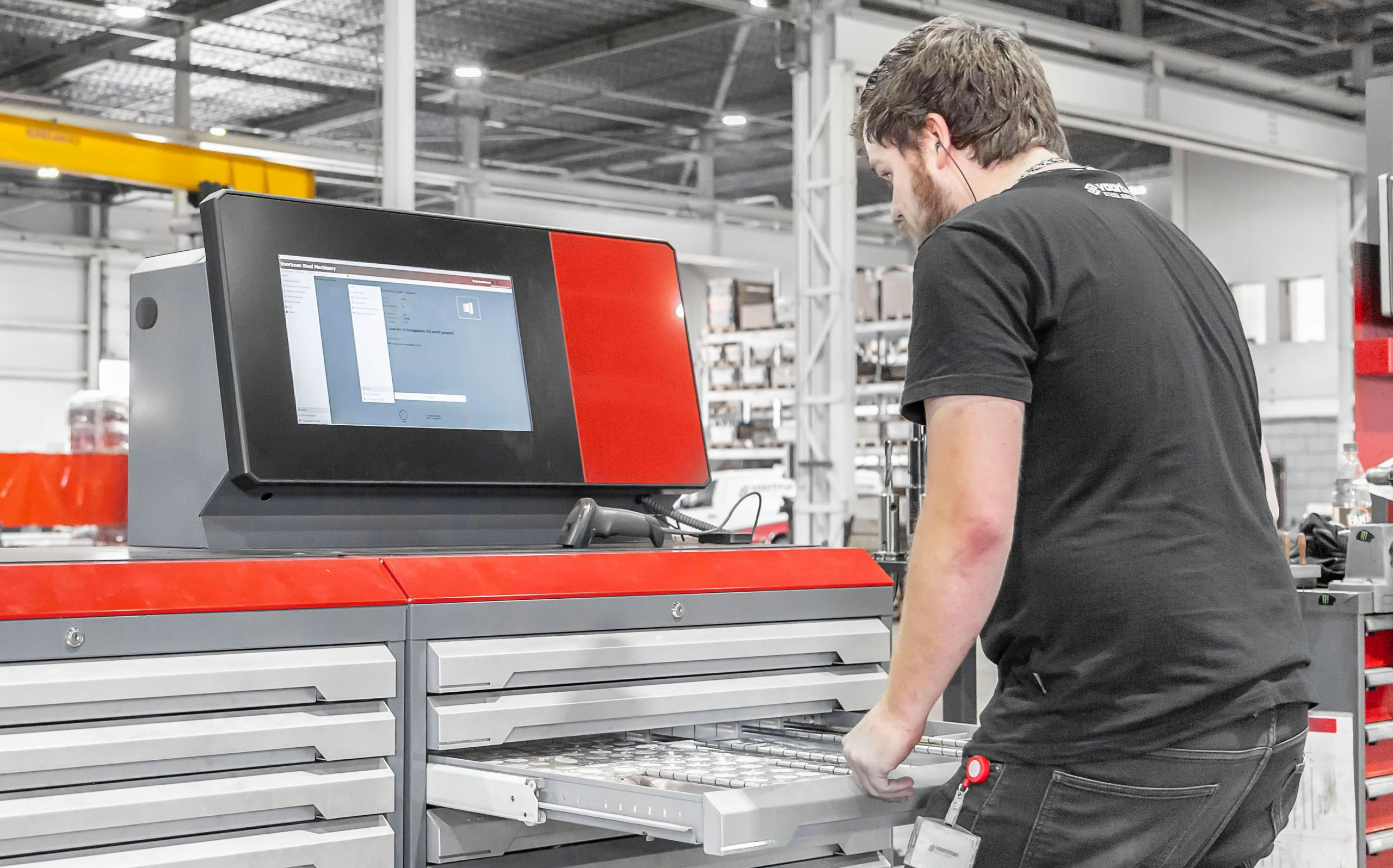 Mit der Entwicklung des Red Tooling Systems (RTS) hat Voortman Steel Machinery eine ebenso innovative wie effiziente Lösung zur Vermeidung von Lagerverlusten und Maschinenstillständen entwickelt. Da alle Werkzeuge immer an einem zentralen Ort vorhanden sind, hat der Benutzer immer Zugriff auf die richtigen Werkzeuge, während die Qualität der Endprodukte gewährleistet ist.