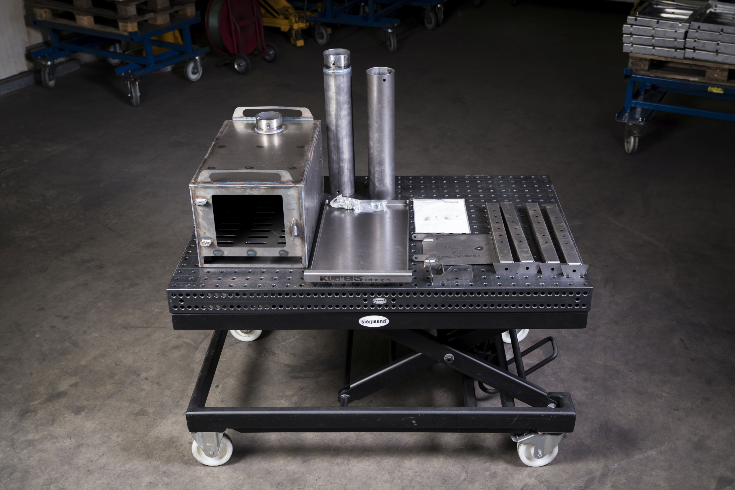 Zunächst setzt sich Karsten Hanenkamp, Betriebsleiter bei KUIPERS, mit Mitarbeitern aus der Konstruktionsabteilung zusammen. „Die Vorgabe war, dass der Ofen ausreichend Heizkapazität liefert und ganz einfach zusammenzubauen ist“, erzählt er. Außerdem sollte der Feldofen gut zu transportieren und nicht zu schwer sein. Eine ganze Menge an Anforderungen also. Klar war auch: „Aufgrund des engen Terminplans kam nur eine automatisierte Fertigung aller Teile in Frage“, so Hanenkamp.